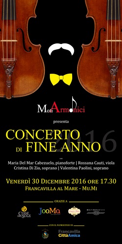 FRANCAVILLA AL MARE (CH) – Venerdì 30 Dicembre 2016 alle ore 17,30 presso il Mu.Mi. di Francavilla al Mare si esibiranno per il secondo anno artisti di fama internazionale per il Concerto di Fine Anno.