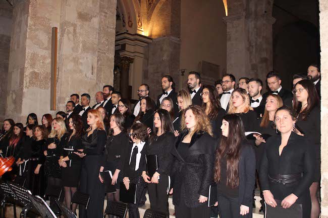 TERAMO – Sono stati i cento elementi dell’Orchestra Sinfonica del Conservatorio Statale di Musica ‘G. Braga’ di Teramo, con una rappresentanza del Conservatorio di Belgrado ‘Davorin Jenko’ e del Coro del Conservatorio ‘G.Braga’, diretti rispettivamente dal Maestro Simone Genuini e dal Maestro Paolo Speca a incantare la Cattedrale di Teramo nel Concerto di Natale che la sera dell’antivigilia di Natale, il 23 dicembre, ha visto la presenza di centinaia di persone a riempire sino all’inverosimile il Duomo. Dal classico ‘Jingle bells’ a ‘White Christmas’ ad ‘Astro del Ciel’ il pubblico entusiasta ha accolto con gli applausi un evento ormai divenuto un appuntamento fisso per il Conservatorio e per Teramo stessa. A fare gli onori di casa sono stati l’Arcivescovo di Teramo, Monsignor Lorenzo Leuzzi, il Presidente del Conservatorio ‘Braga’ Lino Befacchia e il Direttore Federico Paci, con la presenza anche del Vicedirettore Tatjana Vratomjic.