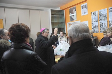 Anche il Centro di Accoglienza “Dono di Maria”, che distribuisce pacchi di viveri e vestiario ai meno fortunati residenti in città, ha ricevuto la visita del Pastore della Diocesi di Teramo-Atri che ha raccolto la testimonianza del fondatore, “nel 1997 incontrai Madre Teresa che mi disse’avrai molto da fare’. Ed io ho iniziato a servire i più bisognosi”, sono state le sue parole sottolineate dall’esperienza delle tante persone che offrono gratuitamente il loro servizio alla causa consapevoli di essere “una goccia nel mare” ma invitate a proseguire dal Vescovo “siete come una matita, continuate a scrivere”.