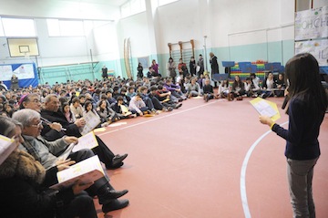 Festoso ed emozionante l’appuntamento di Mons. Seccia nella Scuola Media “V.Bindi”, martedì 1 marzo, dove il Direttore Scolastico Sossio D’Errico, il corpo docenti, l’assessore alla Cultura Luciano Crescentini e circa 300 ragazzi, lo hanno accolto con bandierine colorate, applausi, canti e musica del coro e dell’orchestra composta da tutti studenti, rivolgendo al Vescovo sul senso della vita, dell’amicizia e sulla Chiesa.