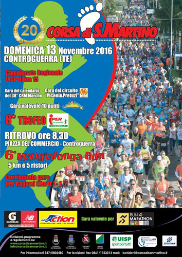 embre 2016, si svolgerà a Controguerra la Corsa di San Martino, giunta alla sua storica 20esima edizione e sempre più vicina allo start della carovana che lo scorso anno ha visto quasi 4000 partecipanti.