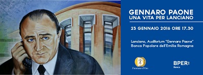 LANCIANO (CH) – Sabato 23 gennaio alle 17.30 a Lanciano presso l’Auditorium “Gennaro Paone” della Banca Popolare di Lanciano e Sulmona avrà luogo il convegno “Gennaro Paone – Una vita per Lanciano”.