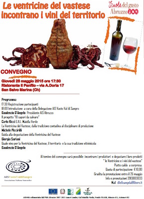 SAN SALVO (CH) – Giovedi 28 Maggio presso il ristorante il Panfilo a San Salvo Marina, dalle ore 18 in poi, si terrà il convegno “Le ventricine del vastese incontrano i vini del territorio”, organizzato dall’Associazione Italiana Sommelier (AIS) attraverso la delegazione Vasto-Val di Sangro, in collaborazione con il GAL Maiella Verde e la consulenza tecnica di Michele Piccirilli.
