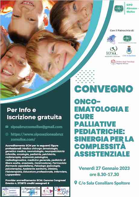 SPOLTORE – Si svolgerà venerdì prossimo, 27 gennaio, alle ore 8.30, presso la Sala Consiliare del Comune di Spoltore, il Convegno su ‘Onco-Ematologia e Cure Palliative Pediatriche: Sinergia per la complessità assistenziale’, promossa e organizzata dalla SIPO Abruzzo e Molise – Società Italiana di Psico-Oncologia.