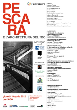 Dopo i saluti del Sindaco di Pescara Luigi Albore Mascia, del Presidente della Provincia Guerino Testa, del Direttore della Biblioteca Provinciale Enzo Fimiani, del Direttore dell’Archivio di Stato di Pescara Antonietta Folchi, di Luca Maggi, Soprintendente ai Beni Architettonici e Paesaggistici per l’Abruzzo e di Fabrizio Magani, Direttore regionale dei Beni Culturali e Paesaggistici dell’Abruzzo, prenderanno la parola, moderati da Sandro Galantini dell’Istituto Abruzzese di Ricerche Storiche, Massimo Palladini, Presidente dell’Ordine degli Architetti della provincia di Pescara (Città della ricostruzione, città contemporanea), Raffaele Giannatonio, docente alla Facoltà di Architettura dell’Università “D’Annunzio” (Architettura del Dopostoria: la “nuova” Pescara), Patrizia Luciana Tomassetti, Claudio Ciofani e Aldo Giorgio Pezzi della Soprintendenza ai Beni Architettonici e Paesaggistici per l’Abruzzo (Novecento e tutela: il riconoscimento del valore culturale), il fotografo Gino Di Paolo (Pescara oltre lo sguardo), Lucia Serafini, docente alla Facoltà di Architettura dell’Università “D’Annunzio” (Ricostruzione come rappresentazione: Pescara nel secondo dopoguerra), e Massimo Bottini di Italia Nostra (Ferrovia e paesaggio: la costruzione della costa adriatica).