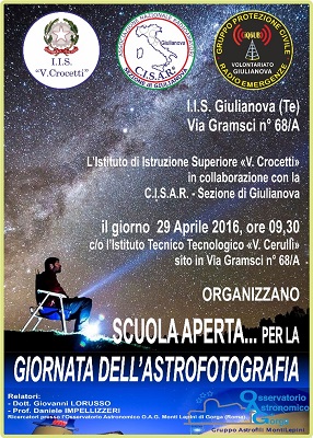 L’ASTROFOTOGRAFIA E LE ELABORAZIONI DIGITALI (Relatore: Prof. Daniele IMPELLIZZERI, responsabile della Sezione Astroimaging dell’Osservatorio Astronomico O.A.G. Monti Lepini di Gorga)