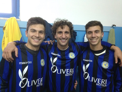 Nella foto al centro il capitano Antonio Mottola, alla sua destra Filippo Cipressi e a sinistra Lorenzo Farindolini (due marcatori della gara).