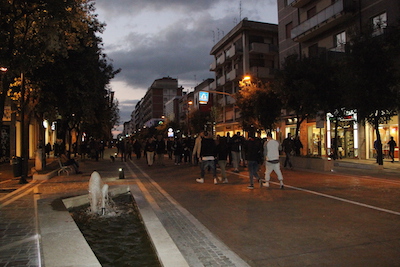 Il corteo, partito dall’incrocio con Corso Umberto, si è diretto verso Palazzo di Città, dove i manifestanti hanno dato voce a quei pescaresi che amano la propria città,tengono alla propria salute e a quella dell’ambiente e vorrebbero tutelarle con una pedonalizzazione più ampia. La riapertura di questa importante arteria contrappone nettamente le parti politiche, i diversi gruppi di commercianti, i cittadini. In particolare però i pescaresi “pigroni ” abituati ad arrivare in macchina fin dentro i negozi, a parcheggiare sopra le strisce pedonali,negli spazi per disabili,sui passi carrabili, in doppia fila hanno trovato chi li ascolta e li coccola, hanno trovato chi invece di ampliare la pedonalizzazione con iniziative impopolari ,ma rispettose della qualità della vita del territorio e dei cittadini riaprirà al traffico una via che era caratterizzata da un altissimo livello di inquinamento,atmosferico,acustico e visivo. Dunque poco importa se a manifestare ieri fossero in pochi o in tanti il problema della salvaguardia della salute pubblica potrebbe essere rappresentato anche da un solo cittadino e chi ci governa dovrebbe averlo a cuore lo stesso.