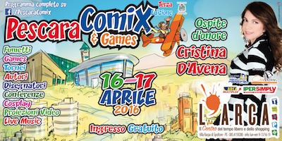 SPOLTORE (PE) – Il Centro Commerciale L’Arca di Spoltore si prepara alla due giorni dedicata ai fumetti e giochi di ruolo con tornei, conferenze, proiezioni video e live music. Presenti diversi autori e disegnatori. Sabato 16 aprile e domenica 17 aprile appuntamento con Pescara Comix & Games 2016. Sabato sera alle ore 21 concerto di Apertura della Bim Bum Bam Cartoon Band con ospiti i Rock ‘n’ RobotZ e ospite d’onore Cristina D’Avena. La cantante di Bologna resa celebre soprattutto per aver interpretato numerose colonne sonore dei più celebri cartoni animati farà tappa in Abruzzo il giorno dopo la sua esibizione al Sinatra Concert Hall a Ferrara.