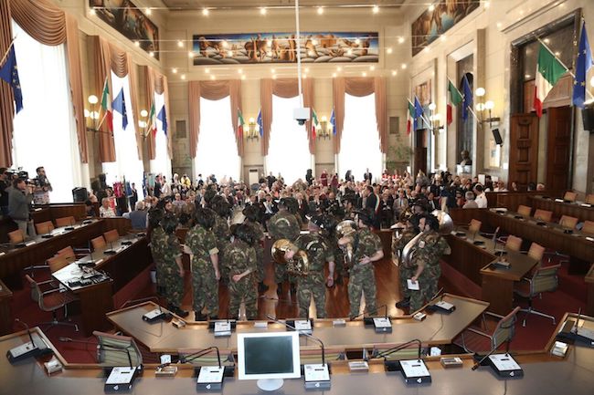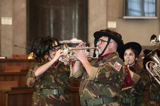 Alla cerimonia è seguita l’esibizione della Fanfara di Casoli che ha fatto rieccheggiare l’Inno d’Italia e le canzoni storiche dei Bersaglieri dentro e fuori Palazzo di Città.