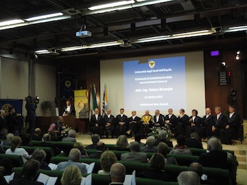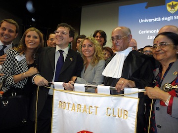 A conferma dell’incessante impegno profuso, indiscutibile peculiarità rotariana, è stata la stessa Facoltà d’Ingegneria di L’Aquila a riconoscere al Presidente K.Banerjee la laurea honoris causa in “Ingegneria Gestionale”.