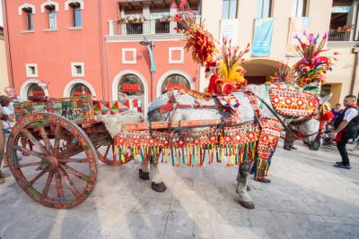 L’anteprima della manifestazione è in programma al Città Sant’Angelo Outlet Village giovedì 16 luglio dalle 19, quando lungo le vie dell’outlet grande protagonista sarà la cultura siciliana con l’installazione dei carretti, concerti di musica folk e la degustazione di arancini, arrosticini e torta al pistacchio. Dalle 19.30 saranno offerte al pubblico 6.000 degustazioni gratuite (2.000 per ciascuna delle tre pietanze)* preparate da maestri della tradizione. La serata si inserisce all’interno della rassegna estiva Street Pop Festival organizzata dal Village, che tutti i giovedì fino al 20 agosto propone non solo il buon cibo da strada in chiave gourmet e shopping fino le 24, ma anche grandi eventi in partnership con le più importanti realtà culturali e istituzioni del territorio, come appunto il Comune di Città Sant’Angelo. La festa vera e propria entrerà nel vivo sabato 18 luglio alle ore 18,30 con i carretti siciliani che sfileranno nel Centro Storico dalle 19,30 e alle 21 nel rione Casale ci sarà lo spettacolo de “Li Mazzemarille”, un viaggio fantastico tra antiche credenze popolari a cura delle associazioni CIVSA e Palio delle Contrade, in programma anche nelle serate del 18, 19, 25 e 26 luglio.