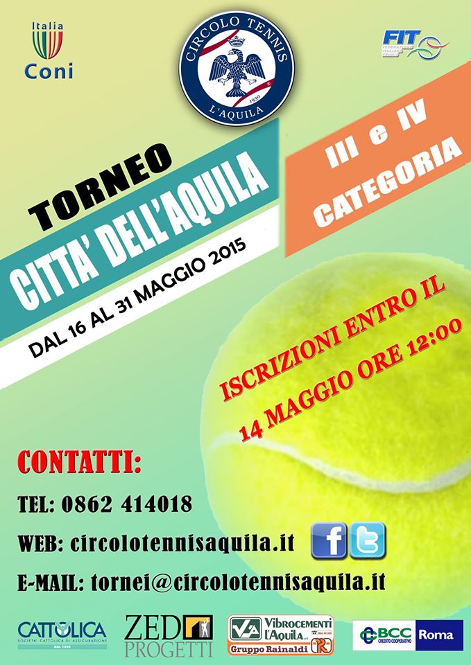 L’AQUILA – Sui campi del Circolo Tennis L’Aquila si è svolto il Torneo di Tennis “Città dell’ Aquila”, riservato a giocatori e giocatrici di 3° e 4° categoria. Erano in programma le gare di singolare maschile e di singolare femminile.