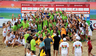 PESCARA – Con la medaglia d’oro conquistata dall’Italia del Beach Soccer contro l’Egitto, si è conclusa oggi la prima edizione dei Giochi del Mediterraneo sulla Spiaggia Pescara 2015, che ha registrato un grande successo sportivo e di pubblico con lo Stadio del Mare e con l’Arena del Mare che nei dieci giorni della manifestazione hanno accolto circa 30 mila spettatori. L’evento sportivo che ha preso il via 28 agosto ha visto la partecipazione di oltre 1330 tra atleti e delegati dei Comitati Olimpici di 24 Paesi dei 3 continenti che si sono misurati in 11 discipline sportive nei 10 giorni di gare. Al Comitato organizzatore Pescara 2015 composto dai rappresentanti del Comitato olimpico nazionale italiano (CONI), del Comune di Pescara, della Regione Abruzzo, sotto l’egida del Comitato internazionale dei Giochi del Mediterraneo (CIJM) è andato il plauso dei comitati olimpici dei paesi partecipanti per l’ospitalità e l’accoglienza garantita alle delegazioni, nel rispetto dei tempi e degli standard internazionali.