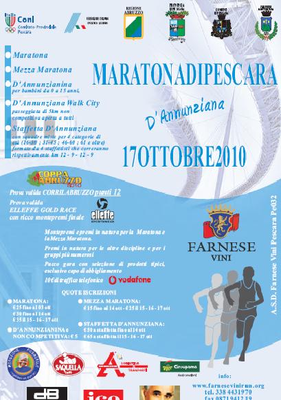 Non solo: per Pescara la Maratona Dannunziana è una delle tappe che ci stanno conducendo alla conquista del titolo di ‘Città Europea dello Sport 2012’, per il quale siamo in competizione con città come Firenze e Viterbo, un lungo cammino che sarà caratterizzato da tante iniziative promosse dalle associazioni del territorio.
