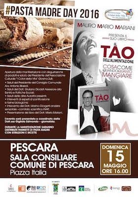 PESCARA – Nasce in occasione del Pasta Madre Day 2016 l’evento, organizzato dall’associazione “I colori della vita”, in collaborazione con la Presidenza del Consiglio Comunale, della Provincia e degli Stati generali delle donne, che prenderà vita domenica 15 maggio dalle 16 in poi presso la Sala Consiliare del Comune, in occasione della giornata nazionale dedicata a questo lievito naturale.