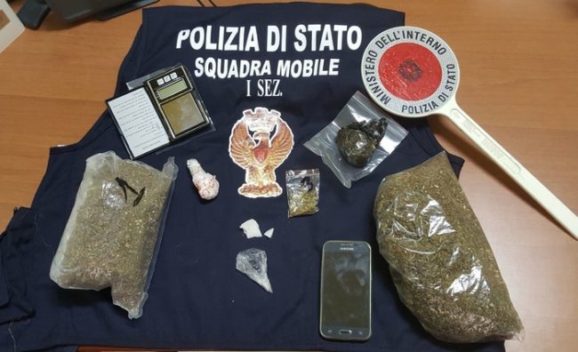 All’interno della camera da letto della sua abitazione, nel corso di una perquisizione, sono stati trovati e sequestrati 520 grammi di marijuana, circa 5 grammi di sostanza solida cristallina del tipo anfetamina, un bilancino di precisione e materiale per il confezionamento delle dosi. Il giovane, che ha precedenti specifici, dopo l’arresto è stato posto ai domiciliari.