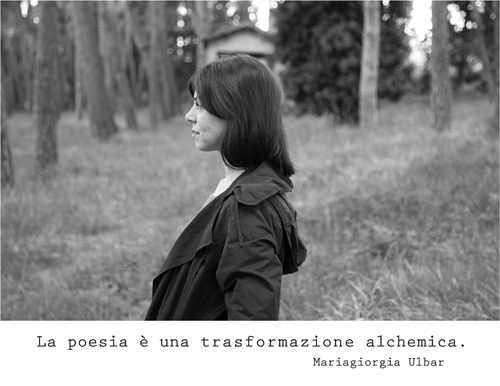 Mariagiorgia Ulbar è nata a Teramo nel 1981, ha vissuto a lungo a Bologna e ora vive tra Roma e l’Abruzzo. Insegna e traduce dal tedesco e dall’inglese. Ha pubblicato la raccolta poetica I fiori dolci e le foglie velenose (Maremmi, Firenze 2012), la silloge “Su pietre tagliate e smosse” all’interno dell’Undicesimo quaderno italiano di poesia contemporanea (Marcos y Marcos, Milano 2012), le plaquette illustrate in edizione limitata Osnabrück e Transcontinentale (Collana Isola, Bologna 2013) e le prime nove cartoline del progetto autoprodotto Poste/Poesie, la raccolta Gli eroi sono eroi (Marcos y Marcos, Milano 2016). Ha fondato la Collana Isola, che pubblica libriccini di poesia e illustrazione di autori contemporanei. Collabora al progetto di poesia e fotografia Il tempo qui non vale niente, che si sviluppa on line al sito lightpo.tumblr.com. Vincitrice del Premio Dessì 2015 e finalista al premio Metauro 2015.
