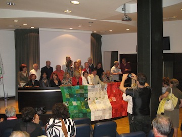 Ieri poi la bandiera ha ripreso il viaggio per raggiungere la Città di Roma e poi via via tutte le altre venti città italiane impegnate nel progetto. A fine anno il tricolore sarà completato per essere offerto in dono al Presidente della Repubblica Giorgio Napolitano.