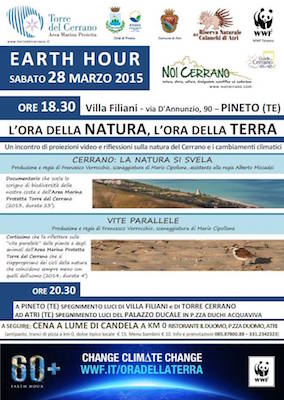 L’AMP Torre del Cerrano invita tutti ad unirsi a questo movimento globale, spengendo luci e dispositivi elettrici non indispensabili per un’ora, con l’obiettivo di sensibilizzare al risparmio energetico e delle risorse naturali, partendo dall’idea di fondo che per ridurre le emissioni di gas serra, responsabili del cambiamento climatico, bisogna intervenire sui nostri consumi di energia.