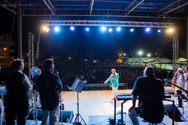 Nella splendida cornice di Montesilvano il cantante romano ha regalato a turisti e residenti un concerto di alto livello, con posti a sedere tutti esauriti, incantando gli spettatori con la sua spiccata ironia e riproponendo i suoi brani di maggior successo.