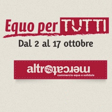Altromercato,importante ente di commercio equo e solidale, socio IFAT(The International Fair Trade Association), ha lanciato la seconda edizione di “Equopertutti” all’insegna di alcuni prodotti in particolare :caffè e zucchero.Due settimane di sensibilizzazione sulla importanza del fair trade attraverso un programma ricco di eventi nazionali e locali ,che indurranno a riflettere sull’incremento del divario tra nord e sud del mondo.Icittadini e le imprese potranno indirizzarsi verso un modo diverso di consumo più attento alla persona e alla sua dignità, all’ambiente, alla biodiversità attraverso l’invito a conoscere le Botteghe e ad effettuare la prova dei prodotti.La manifestazione è partita il 2 ottobre e si svolgerà fino al 17 ottobre in varie piazze italiane.