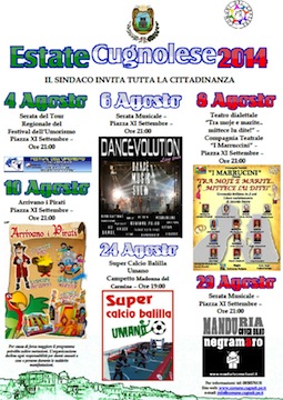 CUGNOLI (PE) – Presentato il cartellone delle manifestazioni estive del Comune di Cugnoli con iniziative organizzate dall’Amministrazione Comunale, denominato “Estate Cugnolese 2014”.Il programma estivo prevede numerosi appuntamenti e manifestazioni che si svolgeranno nella piazza principale del paese e nel campetto sportivo di Via Madonna del Carmine.