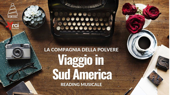 Sabato 2 marzo ore 21.30 a Babilonia Pescara (via Campobasso, 13) Viaggio in Sud America, Reading musicale. La Compagnia della Polvere torna in scena a Babilonia per raccontare un lungo viaggio in Sud America: dal tango della Buenos Aires di Jorge Luis Borges, lungo la rotta tracciata da Bruce Chatwin fino in Patagonia, risalendo in motocicletta con Ernesto Che Guevara lungo le Ande del Cile, tra le pagine di Luis Sepulveda e gli spiriti di Isabel Allende, fino a raggiungere, nel Perù di Mario Vargas Llosa, la mitica Machu Picchu cantata da Pablo Neruda, per finire in compagnia delle puttane tristi in memoria di Gabriel Garcia Marquez.