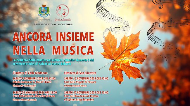 Il Comune di Pescara organizza anche quest’anno la rassegna “Ancora insieme nella musica”, quattro concerti (ingresso gratuito) all’interno dei due cimiteri di Colle Madonna e San Silvestro. La