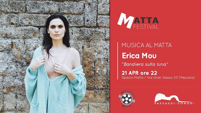 Sabato 21 Aprile ore 22:00 lo Spazio Matta di Pescara ospita il concerto di Erica Mou (nome d’arte di Erica Musci). La cantante presenta “Bandiera sulla luna”, il suo