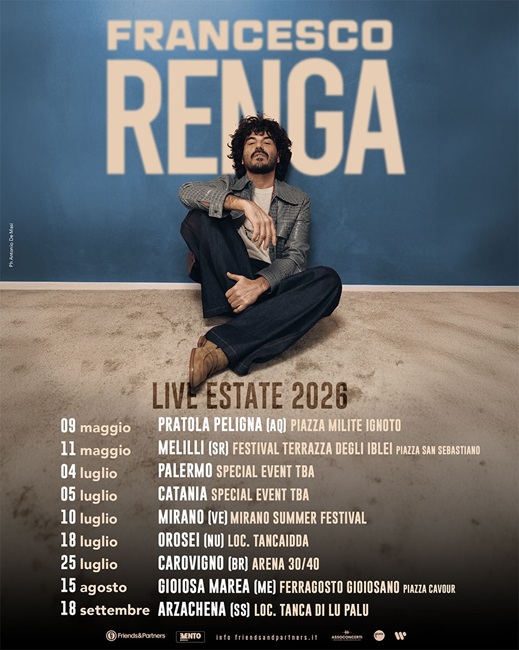 Gli appuntamenti estivi anticiperanno la tournée autunnale “Live Teatri 2026”, prevista tra ottobre e novembre nei principali teatri italiani, dove Renga porterà una dimensione più intima e narrativa del suo repertorio.