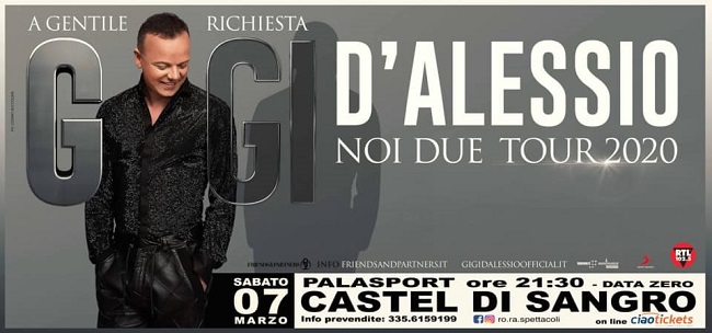 Sabato 7 marzo al Palasport di Castel di Sangro, in provincia de L’Aquila concerto di Gigi D’Alessio. Il live, tappa del tour “Noi due tour 2020”. avrà inizio