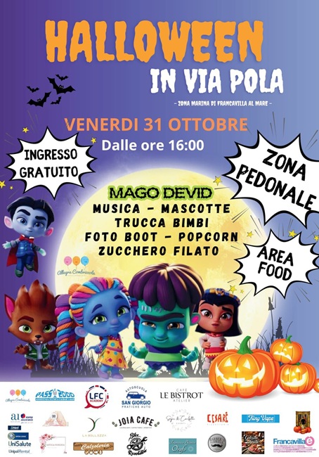 Francavilla al Mare si prepara a vivere un pomeriggio di festa e incanto con Halloween in Via Pola, l’evento pensato per grandi e piccoli che animerà la zona