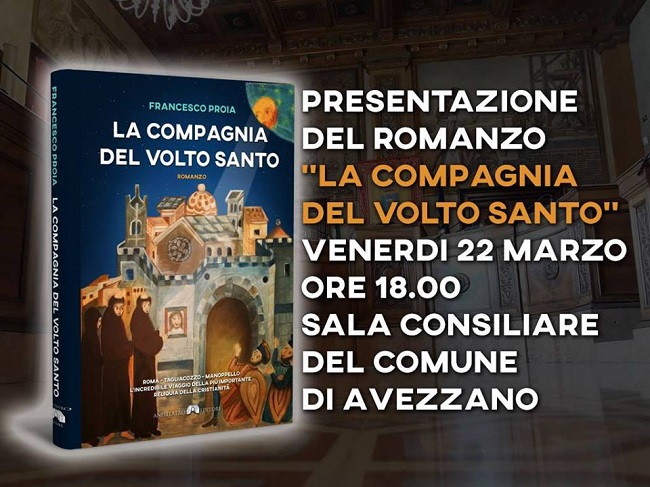 Venerdi 22 marzo dalle ore 18.00 nella sala consiliare del Comune di Avezzano, verrà presentato il nuovo romanzo di Francesco Proia La compagnia del Volto Santo.