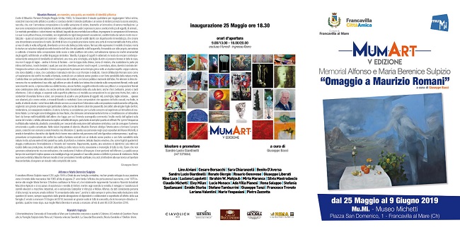 Sabato 25 Maggio alle ore 18,30 si inaugurerà, negli spazi del prestigioso Mu.Mi. (Museo Michetti) a Francavilla al Mare, la V Edizione di MumArt, a cura di Giuseppe