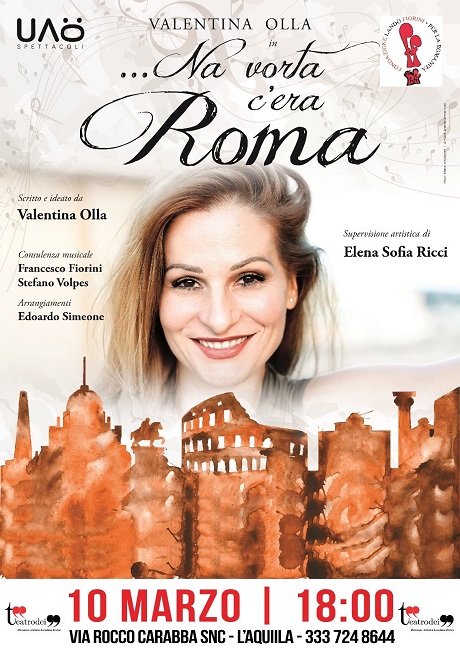 Domenica 10 marzo alle ore 18:00 il pubblico che sceglierà il Teatro dei 99 sarà accompagnato in un viaggio musicale nella canzone romana accompagnata da simpatici aneddoti. Strepitosa interprete sarà Valentina Olla che, dopo il grandissimo successo di “Mammamiabella” e “Uomini sull’orlo di una crisi di nervi”, porta in scena al Teatro dei 99 “Na vorta c’era Roma” recital che vede la supervisione artistica di Elena Sofia Ricci e la consulenza musicale di Francesco Fiorini, figlio del grande Lando.