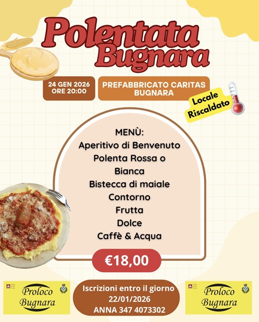Le iscrizioni sono aperte fino al 22 gennaio 2026, data entro la quale è necessario prenotare il proprio posto. Un’occasione perfetta per ritrovarsi, sostenere le attività della Caritas locale e vivere un momento di comunità all’insegna della semplicità e del buon cibo.