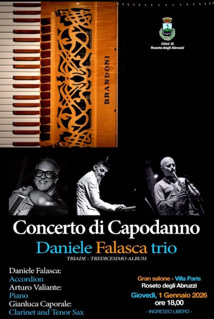 “Iniziare il nuovo anno con un evento culturale di questo livello è per noi motivo di grande soddisfazione – dichiarano il Sindaco Mario Nugnes, l’Assessore al Turismo Annalisa D’Elpidio e l’Assessore alla Cultura Francesco Luciani –. Accogliere la musica di Daniele Falasca e del suo trio a Villa Paris significa offrire ai cittadini un’esperienza artistica di qualità, ma anche creare un momento di condivisione. In un’occasione speciale come il Capodanno, la musica diventa un ponte che unisce la comunità e ci accompagna verso il futuro con armonia e partecipazione. Non c’è augurio migliore per il 2026 che celebrare talenti che portano il nome di Roseto nel mondo”.