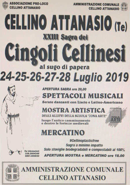 Dal 24 al 28 luglio appuntamento a Cellino Attanasio, in provincia di Teramo, con la Sagra dei cingoli cellinesi al sugo di papera, giunta quest’anno alla sua ventiduesima