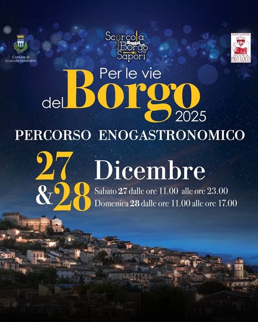 Scurcola Marsicana si prepara a trasformarsi, anche nel 2025, in un vero e proprio scrigno di profumi, tradizioni e sapori. Il 27 e 28 dicembre torna “Scurcola, il