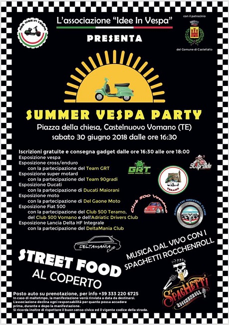 Sabato 30 Giugno dalle ore 16:30 Piazza della Chiesa, a Castelnuovo Vomano, frazione di Castellalto avrà luogo a Castelnuovo Vomano il Summer Vespa Party Ci sarà uno