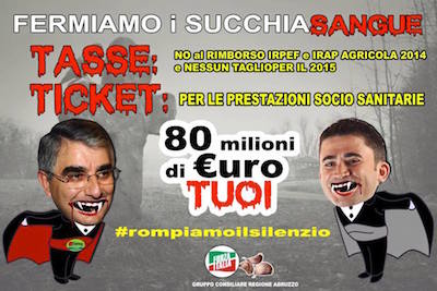 “Di fronte a questa “mazzata” che si abbatterà sui contribuenti abruzzesi – concludono Febbo e Sospiri – abbiamo promesso battaglia e ora siamo curiosi di conoscere le spiegazioni che D’Alfonso darà al Premier e Segretario del suo partito. La cosa certa è che il Presidente della Regione sarà costretto alla trasferta romana visto che di Renzi in Abruzzo non se ne vede nemmeno l’ombra, nonostante le numerose promesse di una sua imminente visita fatte in questi mesi e puntualmente smentite”.