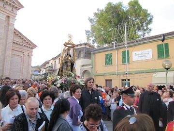 Il lungo corteo ha preso il via dal Santuario alle 19.30: presenti, tra gli altri, oltre al sindaco Albore Mascia anche il Presidente della Provincia Guerino Testa, il Presidente del Consiglio comunale Licio Di Biase, il Presidente della Circoscrizione Mauro Renzetti, l’assessore Eugenio Seccia e il consigliere circoscrizionale Lorenzo Rossi. Il corteo ha sfilato lentamente lungo Strada Vecchia della Madonna, via Valle di Rose, via del Santuario, tra due ali di folla in preghiera, per concludere il cammino all’interno del Santuario.