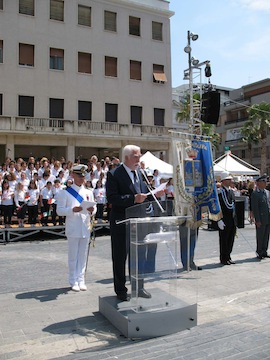 Dopo la lettura dei messaggi del Presidente della Repubblica Napolitano e del Ministro della Difesa La Russa, accompagnati dagli applausi della piazza, uno studente del liceo classico ‘D’Annunzio’, Federico Capuleto, ha letto una poesia scritta dallo studente Fabrizio De Gregorio ‘O Italia Mia’. La cerimonia mattutina si è conclusa con l’esibizione dei mezzi aerei e delle unità di soccorso e delle unità cinofile della Guardia di Finanza.