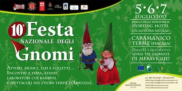 CARAMANICO TERME (PE) – Il suggestivo bosco di San Nicolao a Caramanico si prepara ad accogliere la decima edizione della Festa nazionale degli gnomi in programma dal 5 al 7 luglio prossimi . La festa che ha riscosso negli anni un grande successo di pubblico, sempre disposto ad accogliere con entusiasmo la varietà di proposte e di spettacoli ,anche quest’anno presenta l’ormai tradizionale appuntamento con il mondo affascinante degli spiriti del bosco: gnomi, elfi, folletti e fate daranno vita a storie senza tempo capaci di affascinare e stupire grandi e piccini.Dalla tarda mattinata fino a sera inoltrata, l’associazione culturale Abruzzo Tu.Cu.R. I Guardiani dell’Oca, in collaborazione con la Regione Abruzzo, il Comune di Caramanico Terme e lo Sporting Hotel di Caramanico, darà vita a spettacoli, animazioni, incontri a tema e laboratori per bambini e famiglie, trasportando i visitatori tra le suggestioni e le meraviglie di un bellissimo bosco incantato, nel cuore verde del Parco Nazionale della Majella.