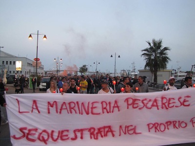 esprimendo un plauso per la straordinaria fiaccolata, non posso però non notare ed esprimere rammarico per l’assenza dalla manifestazione del Prefetto Vincenzo D’Antuono, che è il primo rappresentante del Governo sul territorio e ci aspettavamo la sua presenza quale testimonianza di solidarietà e di concreta vicinanza alla marineria e alle Istituzioni locali.