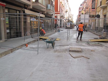 PESCARA – Oggi , martedì 15 novembre, si inizierà a pavimentare l’asse stradale centrale di via Mazzini. Infatti completato il rifacimento con le mattonelle di porfido a cubetti dei due assi laterali, per garantire la fruibilità della strada da parte dei pedoni, e non isolare gli esercizi commerciali, partirà l’installazione del porfido squadrato al centro della via nel primo tratto compreso tra via Forti e via Cesare Battisti, dove dunque i lavori stanno marciando a ritmo serrato. E tempi rispettati anche sul cantiere di via Firenze-via Cesare Battisti: l’impresa responsabile, l’Adriatica Edilizia Srl di Roma, ha già ripristinato il massetto al centro della carreggiata stradale e in mattinata ha avviato la demolizione dei due marciapiedi laterali. Per lunedì prossimo potrebbe già partire la fase della ripavimentazione con pietra bianca e pietra nera.