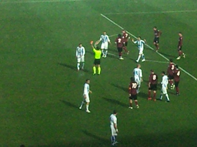 22m punizione cross di Coletti per l’accorrente di Olivi che non arriva sul pallone. Nell’occasione scontro del capitano biancoazzurro con Rossi e giocatori leggermente infortunati