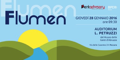 PESCARA – Giovedì 28 gennaio 2016, dalle ore 09.30 presso l’Auditorium L. Petruzzi del Museo delle Genti d’Abruzzo in via delle Caserme, 24 a Pescara, si terrà il convegno “Flumen. Opportunità di sviluppo del bacino Aterno-Pescara. Progetto di rilancio dell’economia locale”.