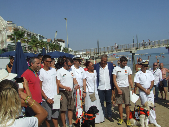 L’iniziativa si è svolta nel tratto di spiaggia libera sottostante il pontile Sirena ed è stata l’occasione per conferire un encomio da parte del Sindaco di Francavilla al Mare, Avv. Antonio Luciani, ai tre soccorritori che sono intervenuti lo scorso 16 luglio, mettendo in salvo un uomo in evidente difficoltà che a causa del mare agitato era stato trascinato dalla corrente oltre gli scogli.